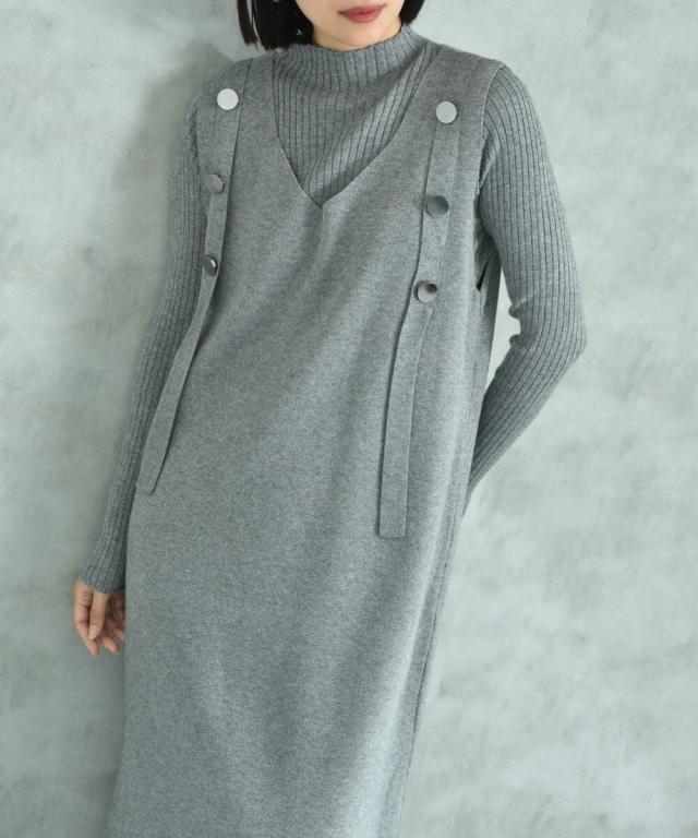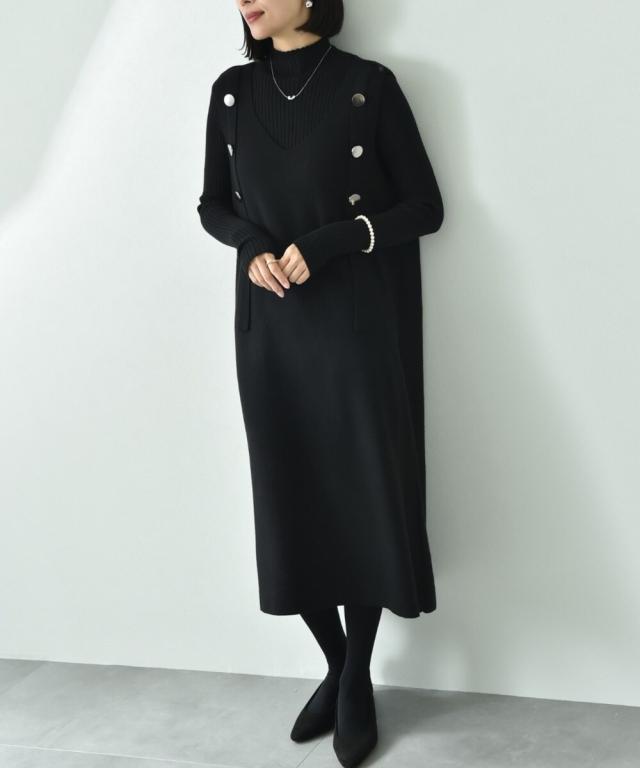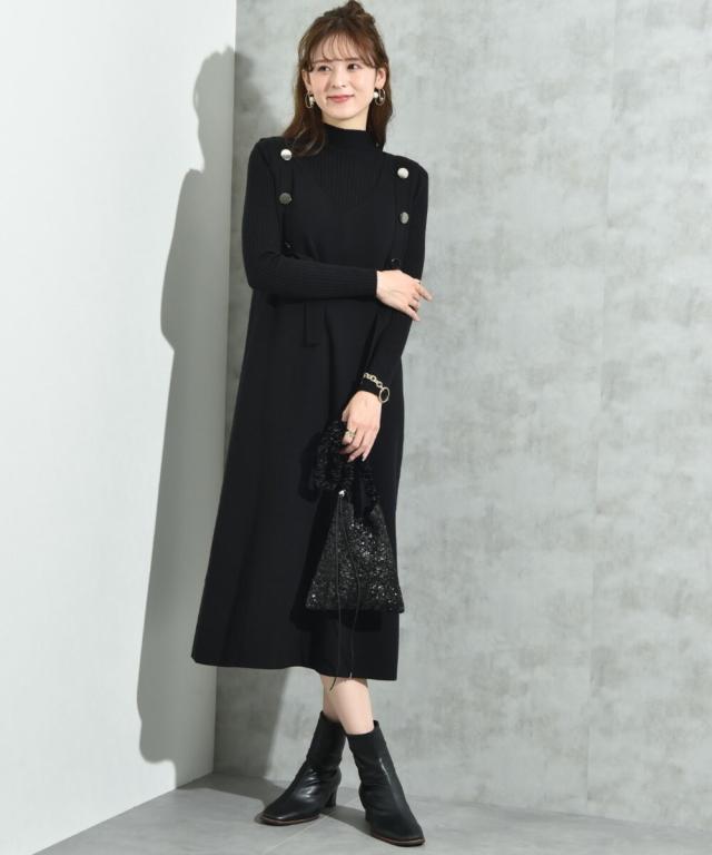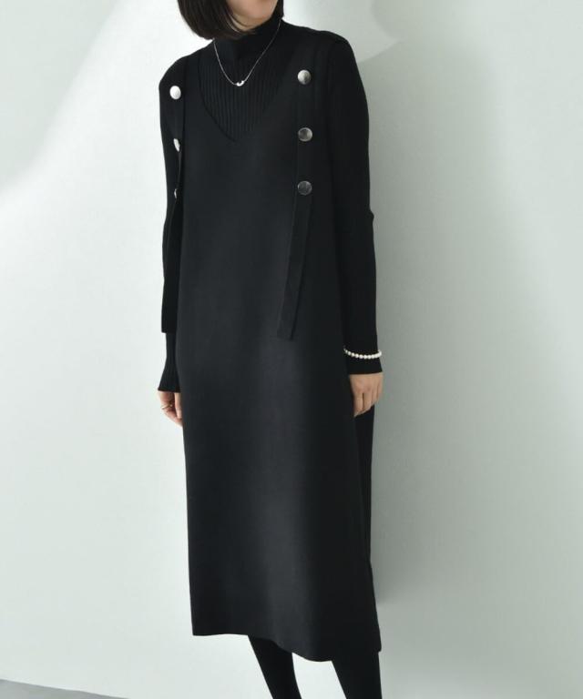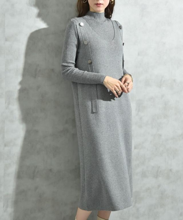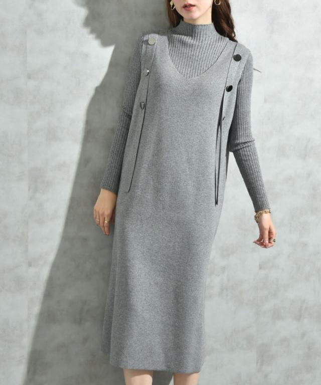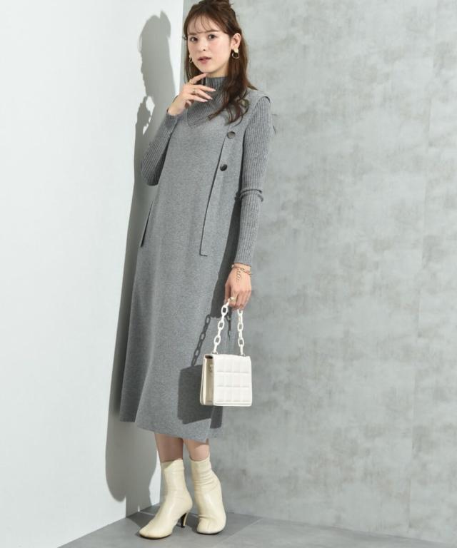 本体のワンピースは肌触りの良いニット素材を使用。何と言ってもコーディネートに悩まないのが嬉しいポイント◎