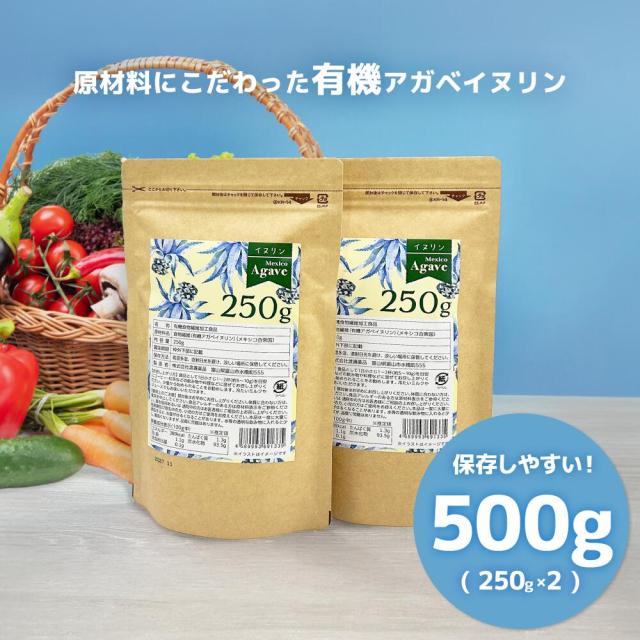 有機 イヌリン パウダー 500g 2袋 食物繊維 オーガニック サプリ 有機食物繊維加工食品 アガベイヌリン 250g×2袋 渡邊薬品 サプリ 水溶性 食物繊維 粉末 有機 アガベイヌリン パウダー サプリ 送料無料 医薬品GMP工場 ※有機原材料使用※