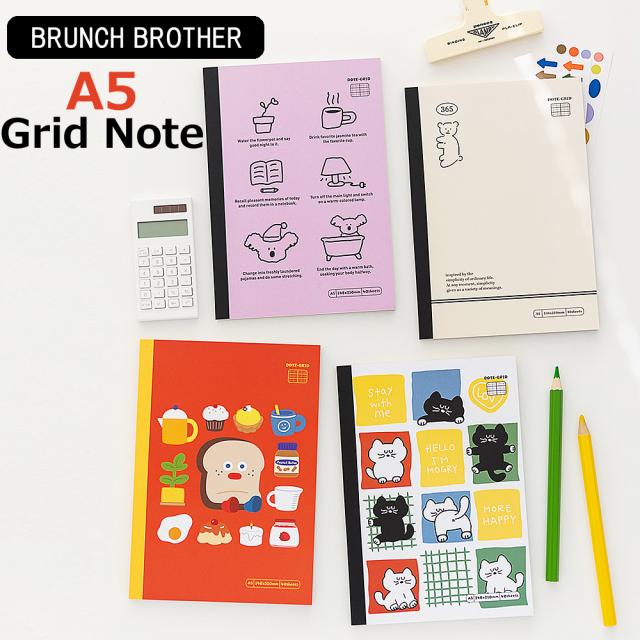 韓国直輸入正規品 ブランチブラザーノート A5 文房具 メモ帳 グリッド 軽量 ROMANE brunchbrother トースト コアラ 犬 猫 くま かわいい 韓国雑貨 キャラクター ロマネ 格子 モーグリ ベア BB ステーショナリー