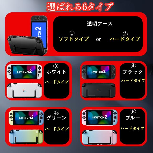 Switch2保護ケース クリアケース ドック対応 分体式設計 保護ケース PC材質 Joy-Con/TPU製 着脱簡単 黄ばみにくい 軽量 全面保護 耐衝撃 傷防止 スイッチ2モデル用 2025対応 保護カバー