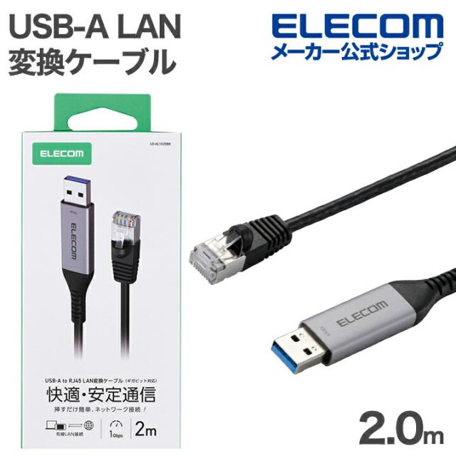 エレコム USB-A LAN変換ケーブル 1Gbps CAT6 MACアドレスチェンジャー 2.0m ブラック ┃LD-AL1G20BK