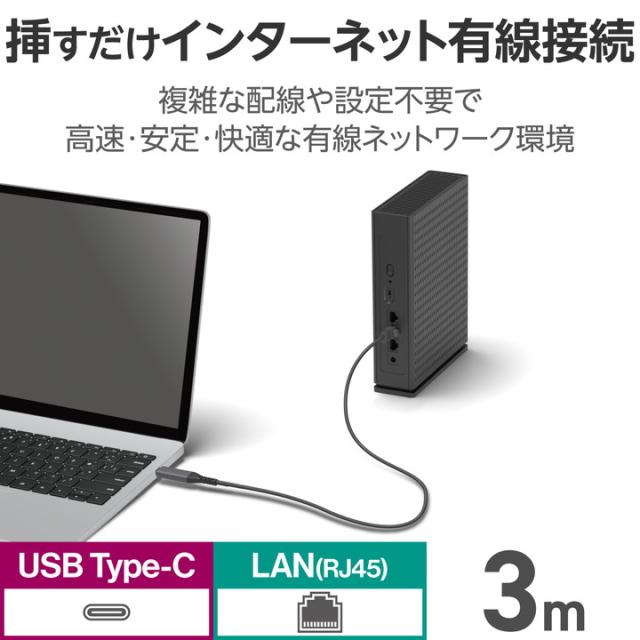 エレコム USB Type-C LAN変換ケーブル 1Gbps CAT6 MACアドレスチェンジャー 3.0m ブラック ┃LD-CL1G30BK