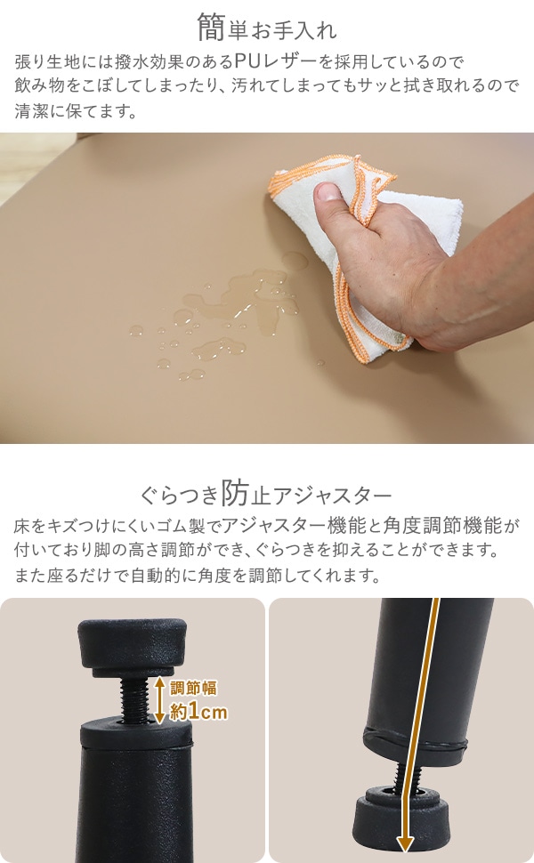 | 材質 | 炭素鋼[静電塗装](脚)、PU(ポリウレタン)(張り生地)、高弾性スポンジ(クッション)、ゴム(脚先) |