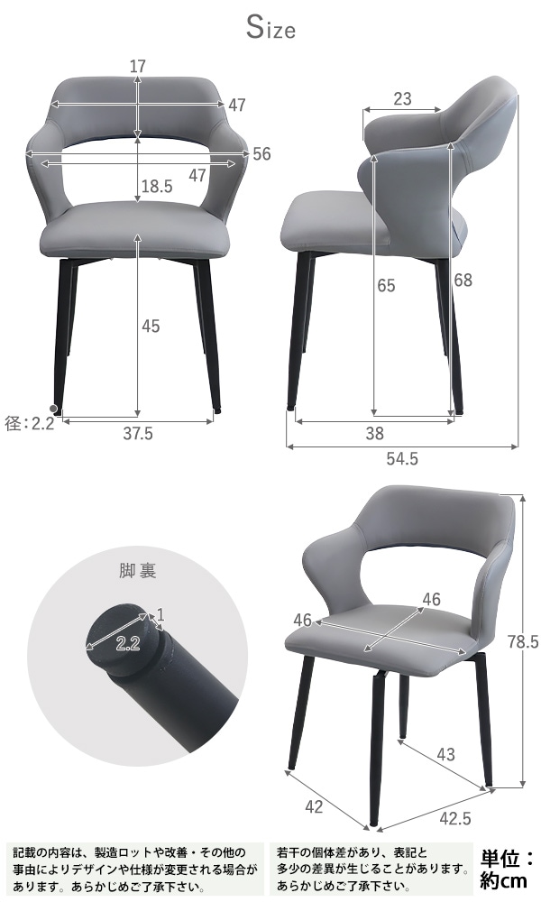 | 梱包サイズ | W約 59×D約 54×H約 47(cm)/約8kg(1脚) |