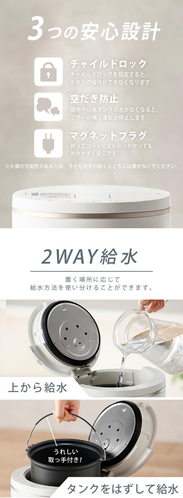 (検索用:加湿器 卓上 スチーム式 加熱式 2L 上から給水 上部給水 丸洗い 洗える お手入れ簡単 清潔 カルキ汚れ 取れやすい 静音 おやすみモード リビング 寝室 冬 乾燥対策 加湿機 4967576812160 4967576812177)