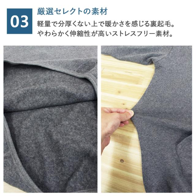素材は軽量で柔らかい裏起毛スウェットを使用。