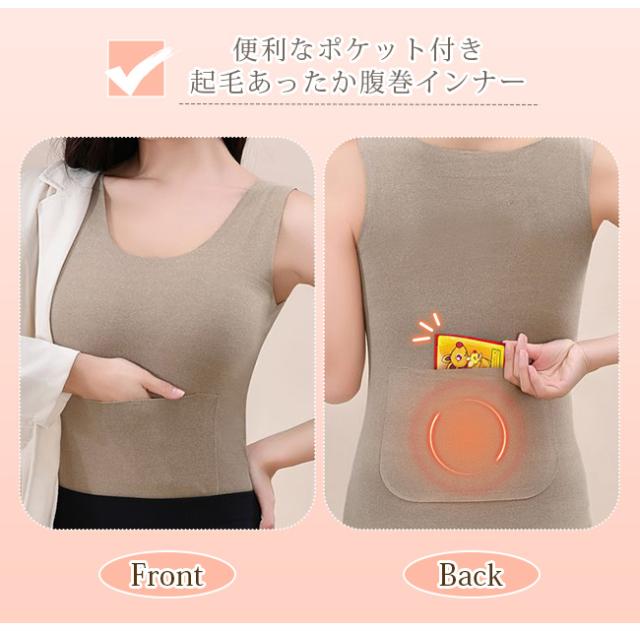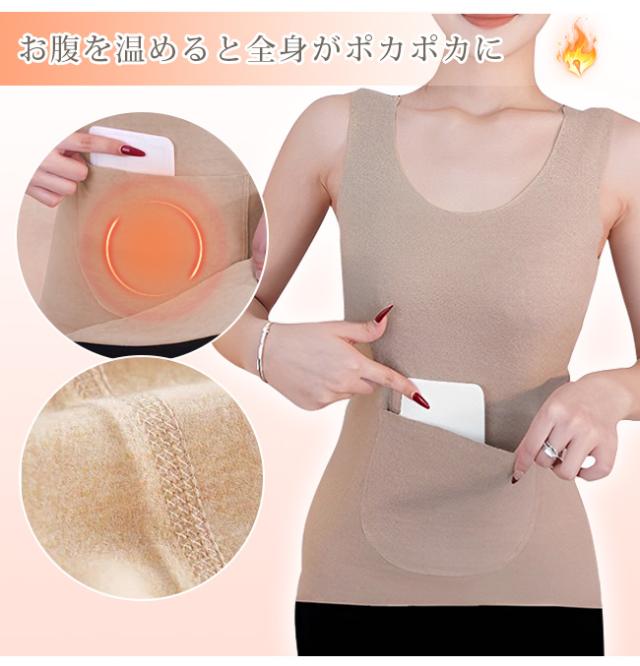 秋新作 裏起毛 タンクトップ あったか インナー レディース 腹巻き ポケット付き 冷え対策 暖かい 防寒 秋冬 下着 肌着 ストレッチ キャミソール