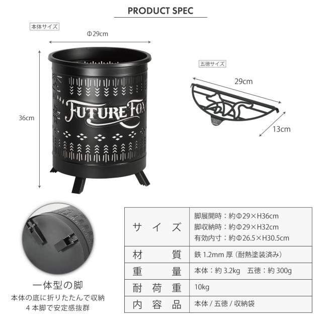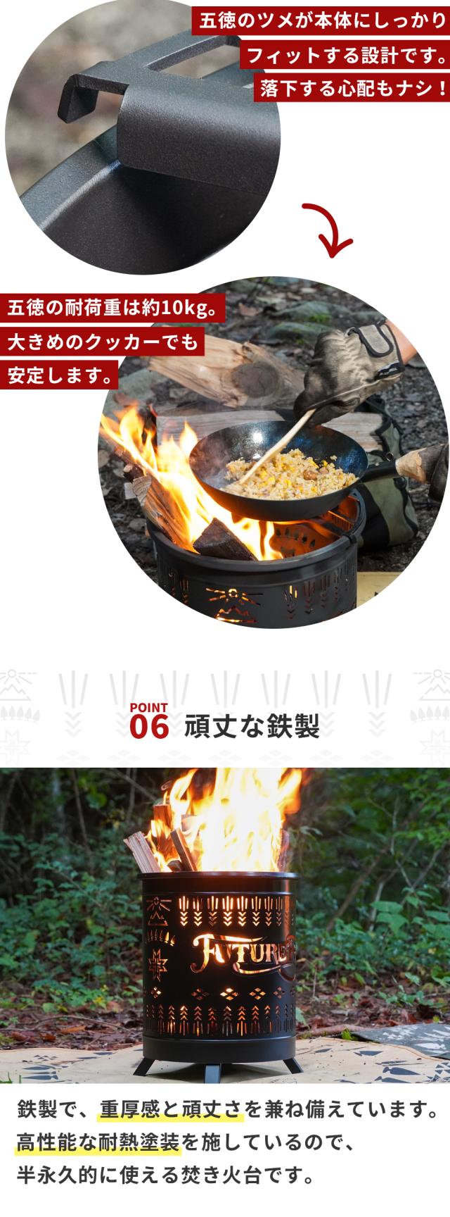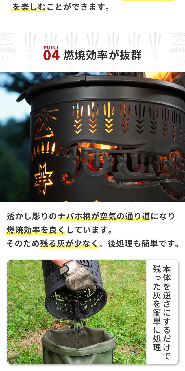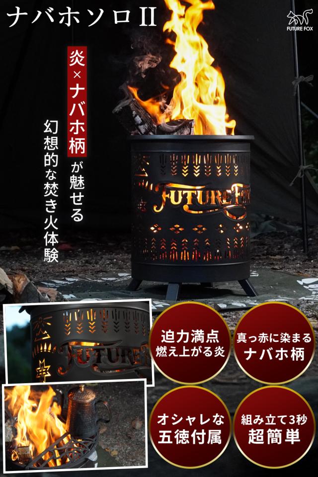 焚き火台 ナバホソロ2 FUTURE FOX ソロ 鉄製 ナバホ柄 たきび台 焚火台 キャンプ 収納袋 五徳付2