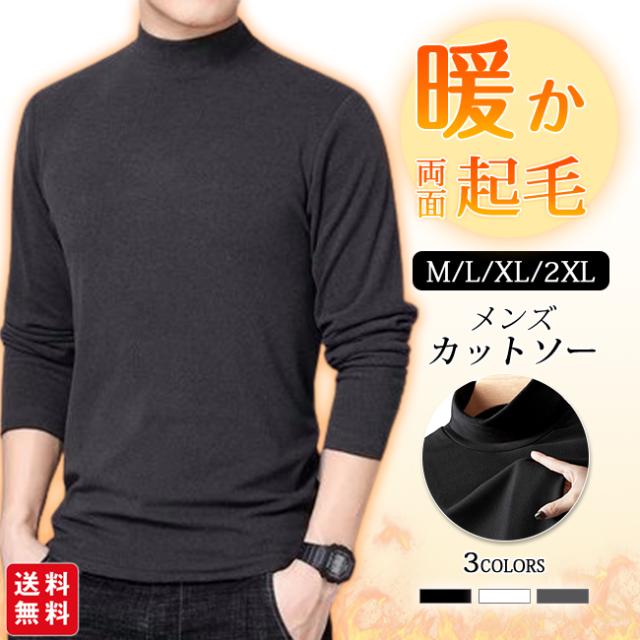秋新作 カットソー Tシャツ メンズ 両面起毛 長袖 ロンT 微起毛 タートルネック インナー トップス モックネック フリルネック