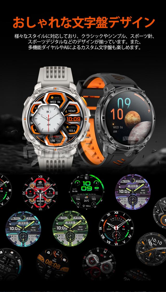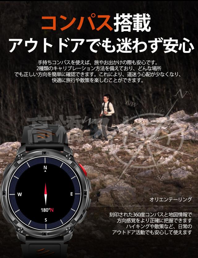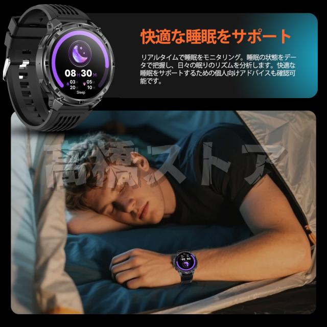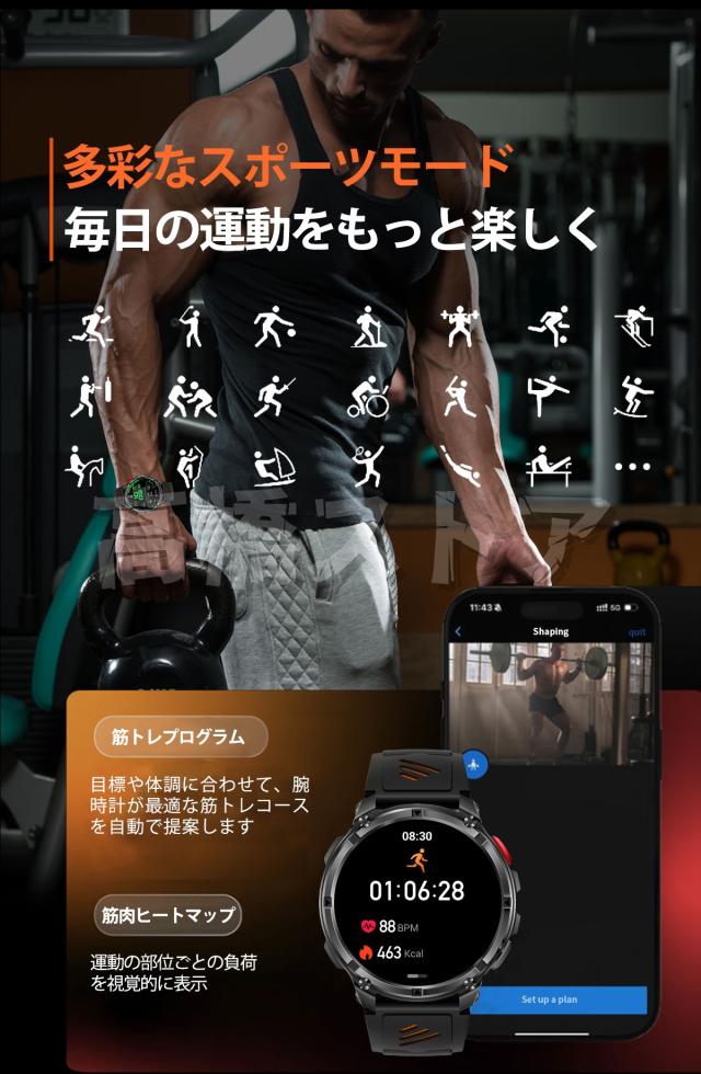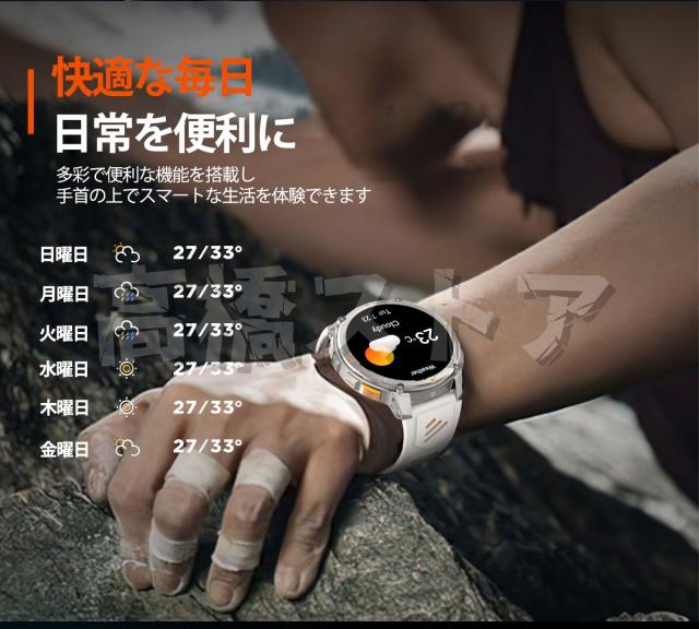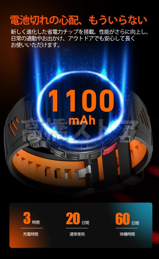 一般的なスマートウォッチの電池容量(200〜400mAh程度)を大きく上回る、1100mAhの大容量バッテリーを搭載。通常使用なら約10〜15日間、省電力モードでは最大30日間前後の連続使用が可能です。頻繁な充電から解放され、旅行や出張、アウトドアでも安心してご利用いただけます。 |