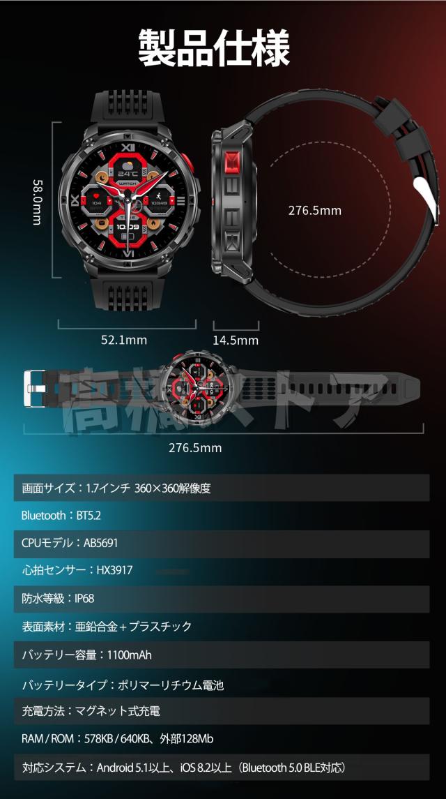 ・ベルト 22mm ・付属品:スマートウォッチの本体*1、ベルト*1、充電ケーブル*1、日本語説明書*1 |