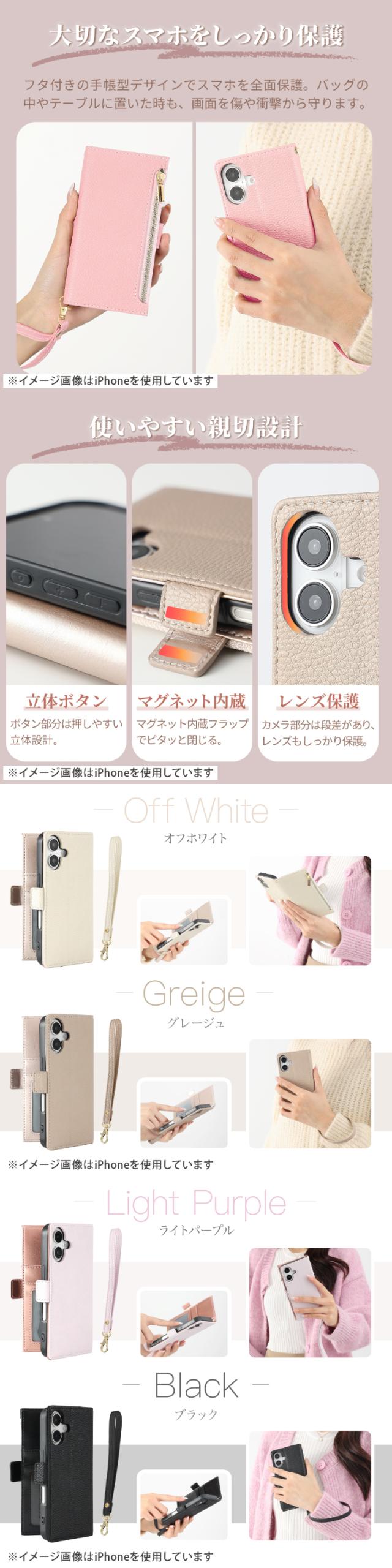 フタ付の手帳型デザインでスマホを全面保護