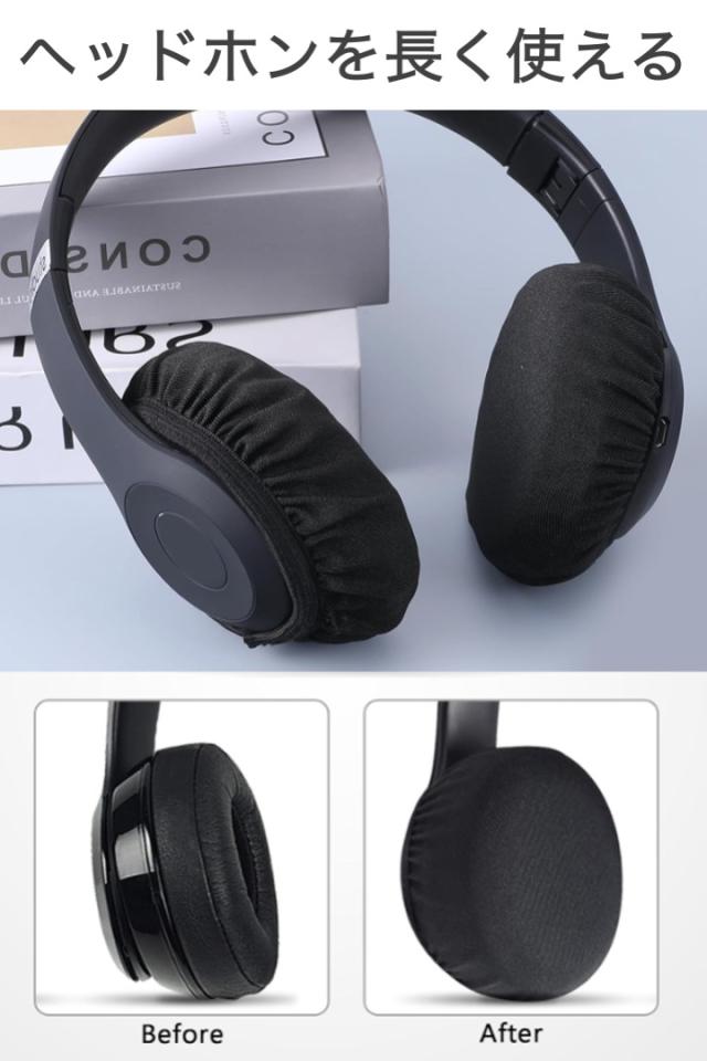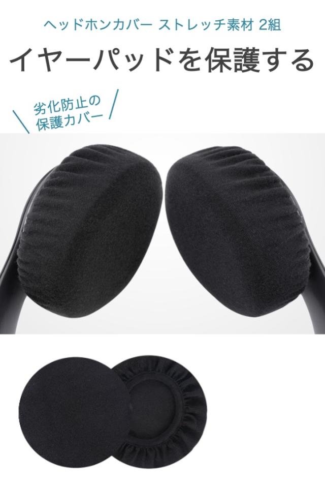 ヘッドホンカバー ストレッチ素材 2組 黒 直径8-11cm イヤーパッドカバー 保護 抗菌 伸縮 ヘッドホン イヤーパッド カバー ネット 交換 軽量 吸湿 速乾 ヘッドセット ネットカフェ 共用 ベタつき 仕事 汗 夏 衛生 シンプル ボロボロ サラサラ ピッタリ