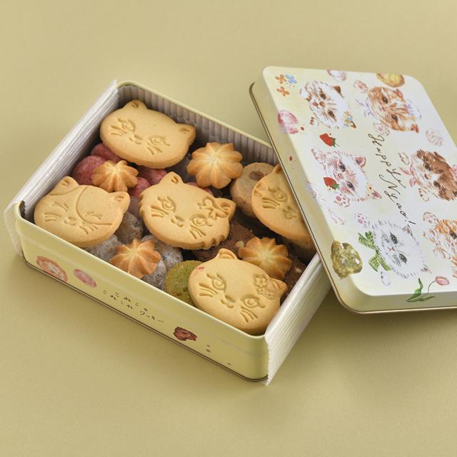 サクほろ食感のクッキーを詰め合わせたギフト缶。バラエティ豊かな食感、フレーバーをお楽しみいただけます。高級感もありシーンを選ばずご利用いただけ、猫を愛する人へのギフトには最適です。