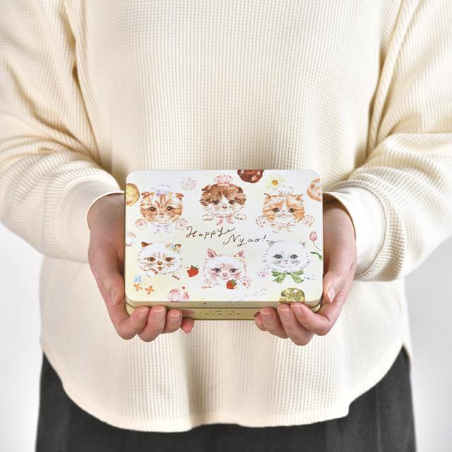 こねこのこねこねクッキー Happy Nyao缶 お菓子スイーツ/クッキー/猫/猫型クッキー/猫 デザイン/かわいい/おいしい/ギフト プレゼント/缶/