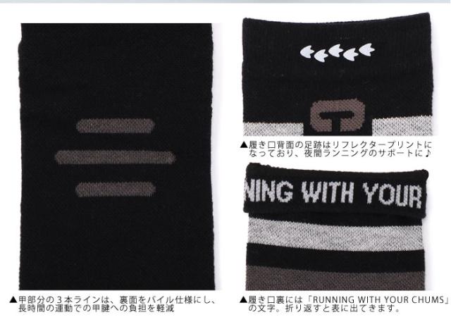 ・足裏に「RUNNING WITH YOUR CHUMS」のシリコン滑り止めを配置