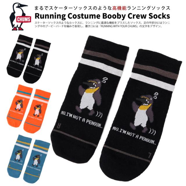 CHUMS チャムス ランニングコスチュームブービークルーソックス ショート丈 ロゴ 靴下 メンズ レディース 滑り止め付き ジョギング ランニング トレーニング パイル プレゼント CH06-1138 メール便対応 2025秋冬