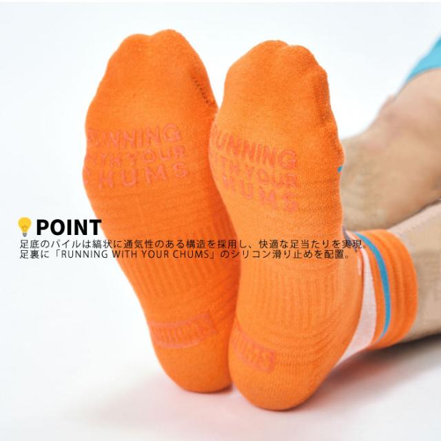 ・足裏に「RUNNING WITH YOUR CHUMS」のシリコン滑り止めを配置