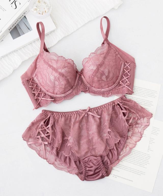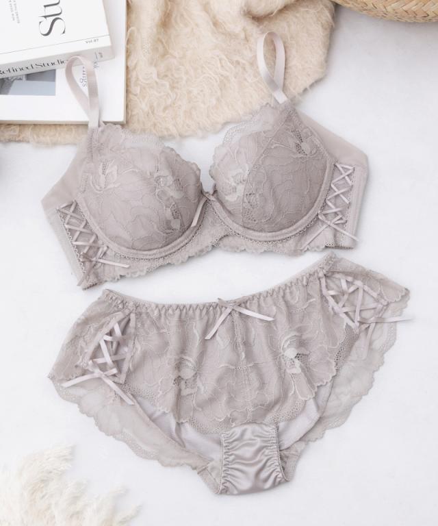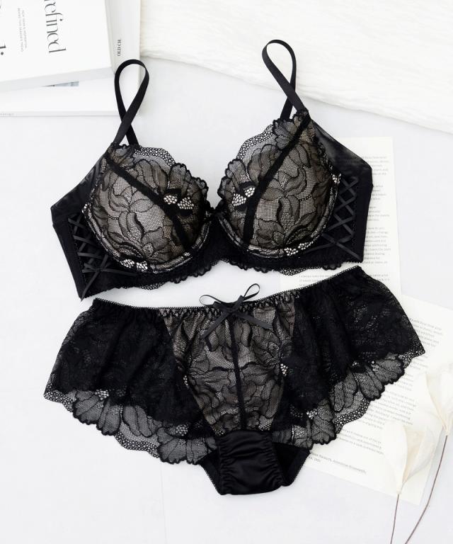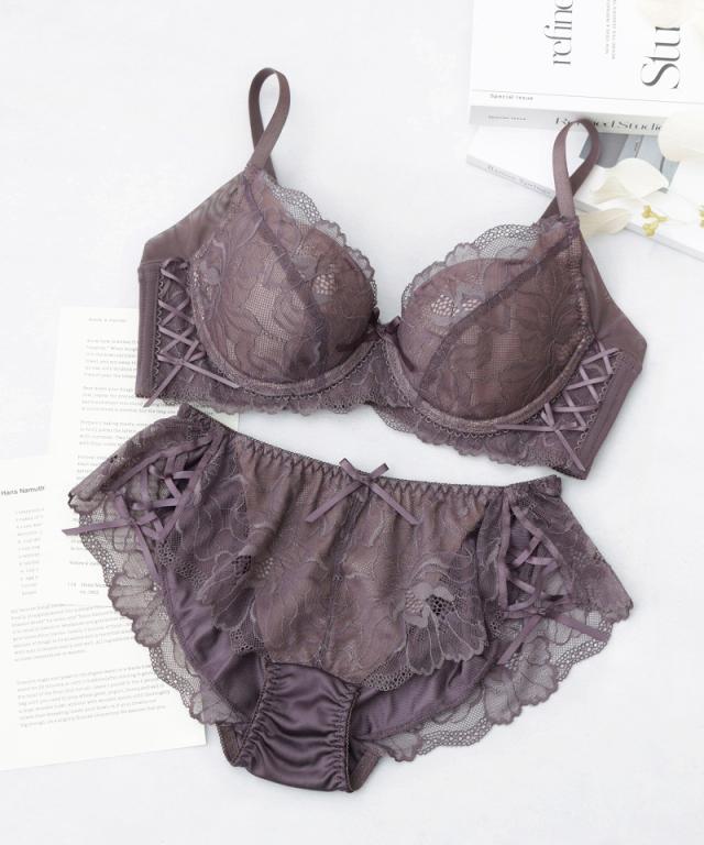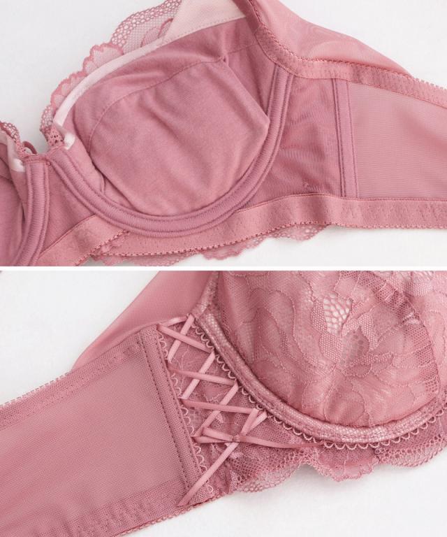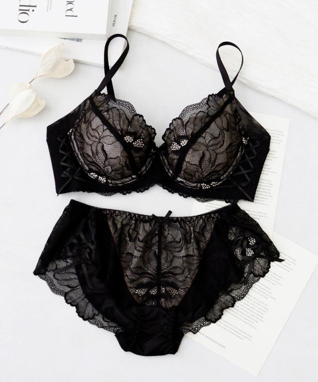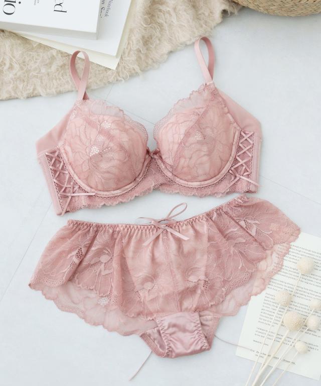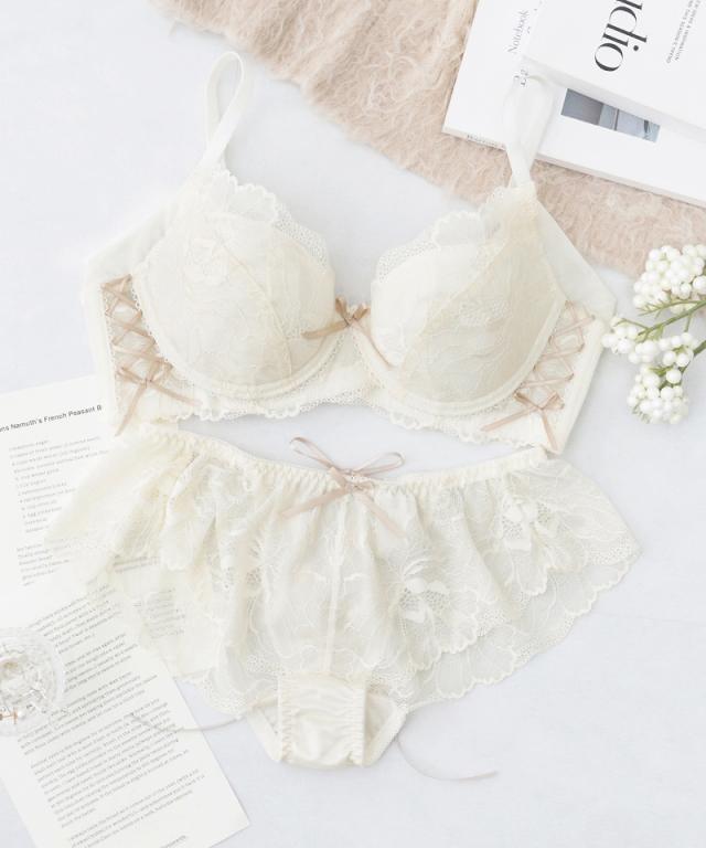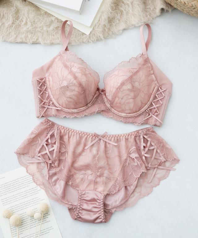 《BraJelly》ピオニーレースアップブラ&ショーツ 苦しくない補正ブラ ブラジャー ショーツ 上下セット 脇高 ブラ 脇肉 補正 下着 補正ブラ【秋新作】