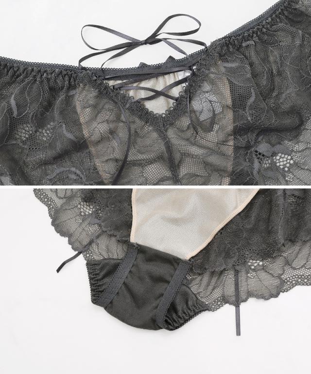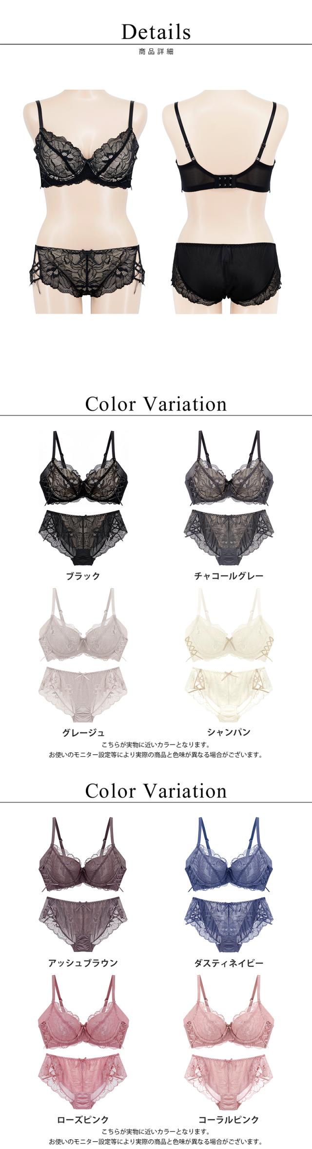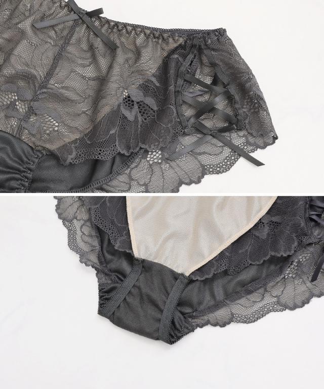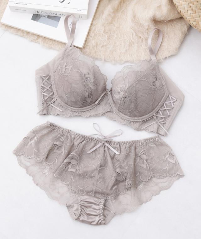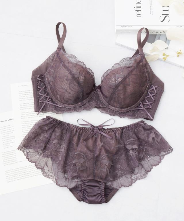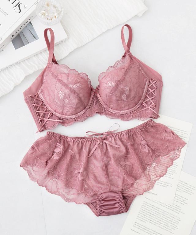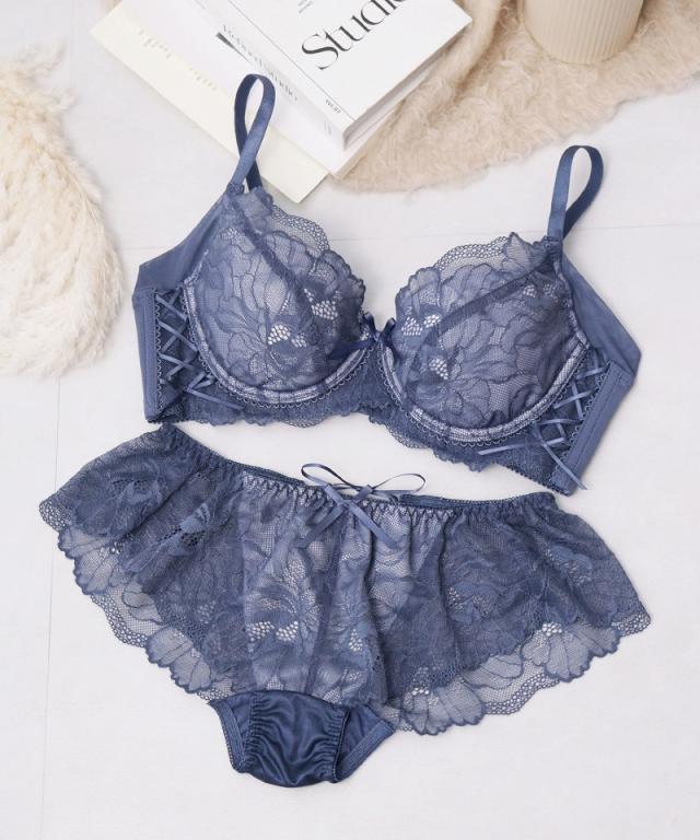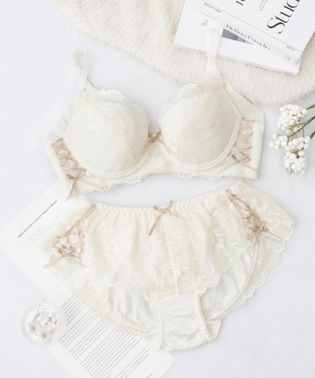 《BraJelly》ピオニーレースアップブラ&ショーツ 苦しくない補正ブラ ブラジャー ショーツ 上下セット 脇高 ブラ 脇肉 補正 下着 補正ブラ【秋新作】