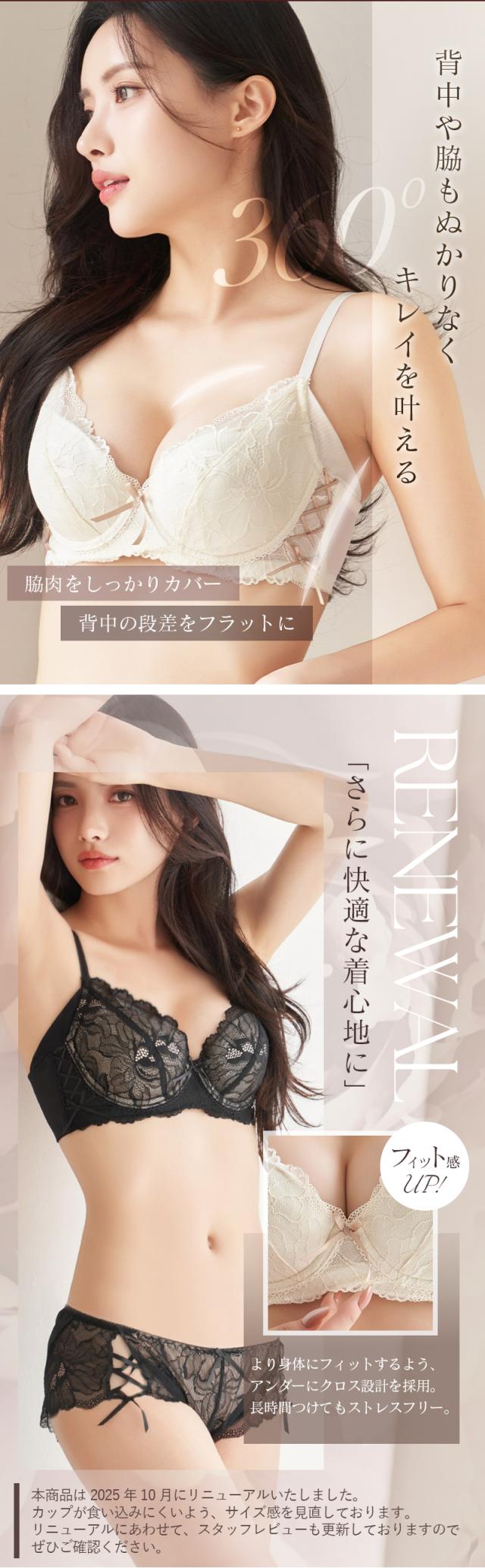 tu-hacci Bra&Shorts Collection ブラ&ショーツ / 計2点セット 補正ブラに見えない脇肉撃退ブラ〜Bra Jelly(ブラジェリー)シリーズ〜 凛と咲き誇る芍薬をモチーフにした 《Bra Jelly》ピオニーレースブラ ボディの持つ美しさを最大限に引き出し、自信をもたらすランジェリー。 細部までこだわり抜いた贅沢デザインに、美補正機能を限りなく詰め込んで。 着けるたびバストも気持ちも花開く。 年齢を重ねるごとに、毎日をプレイフルに楽しみたい女性へ贈る 補正下着に見えない補正ブラシリーズです。 【こんな方におすすめ】 ・背中や脇のハミ肉や段差が気になる方 ・デコルテのそげやバストの下垂が気になる ・カップがパカパカ浮きやすい方 ・補正力もデザインもあきらめたくない ・補正ブラの窮屈感が苦手な方 オリジナルのフラワー刺繍で、全体を華やかにドレスアップ。 ヌーディな下地に芳しい花々が浮かび上がる、グラマラスな一着。 ■バスト丸ごとカップイン。高さのある華やぎバストをメイク 立体三枚ハギ構造でバストを潰さずふっくらリフトアップ。 パッド付きでボリューム調整可能。 ■幅広い体型に寄り添う設計 前中心クロスでずれにくく、しっかりバストにフィット。 華奢見えも◎ ■ムダ肉を逃さずキャッチ。脇高設計&パワーネット 幅広のバックベルトは背中の段差ができにくい仕様。 カップ脇のパワーネットとカバーパーツが、流れがちな脇のぷよ肉まで残さずブロック。 ■ショーツが選べる2種類の組み合わせ お好みのタイプからお選びいただけます。 ・Aタイプ…レースバックショーツ ・Bタイプ…フルバックショーツ ※ブラは共通です。 ≫ ギフトラッピングはこちら ≪ |