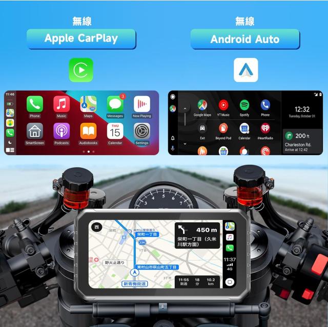 【ワイヤレスCarPlay/Android Auto対応のバイク スマートモニター】