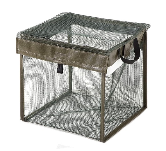 ■サイズ 外寸:(約)52×52×52cm 内寸:(約)45×45×45cm 折りたたみ時の厚み:約5cm 重量:約500g 収納容量:約90リットル ■材質:(ネット)ポリエチレンテレフタレート(再生樹脂) (シート)ポリエチレン (ハトメ)真鍮 (芯材)FRP