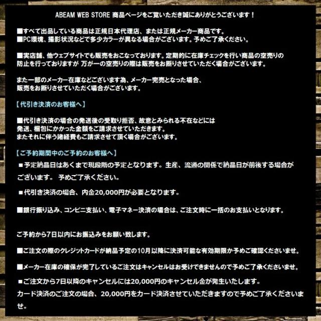 ■メーカーの都合により、商品の入荷遅れ・オーダー数より入荷が少ない場合は メーカーより販売のキャンセル になる場合がございます。その際は、ご注文の変更、又はキャンセルの手続きをさせていただく場合がございますので、誠に恐れ入りますが、何卒ご了承ください。