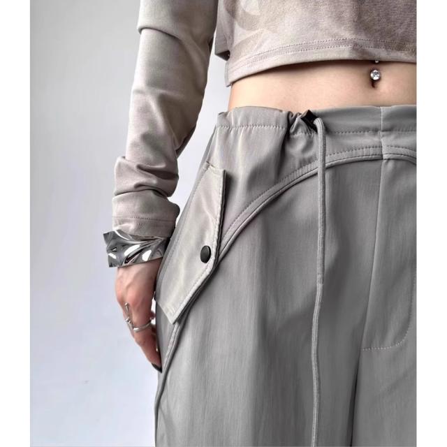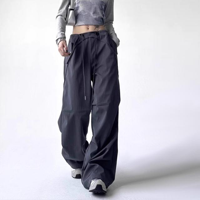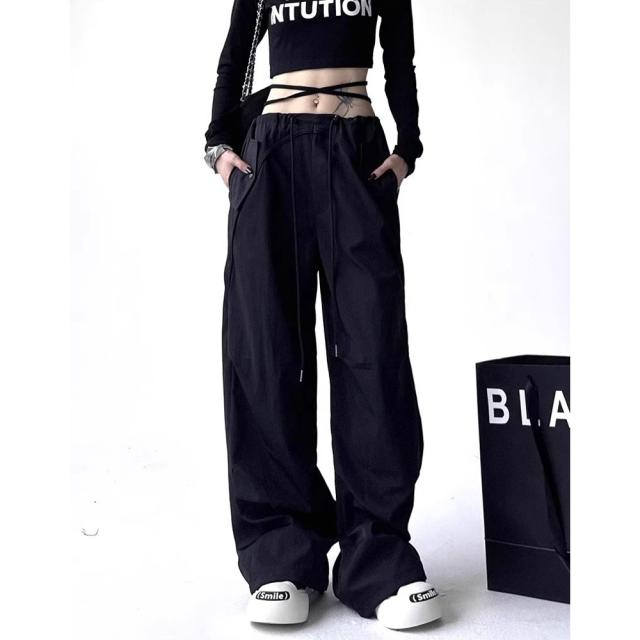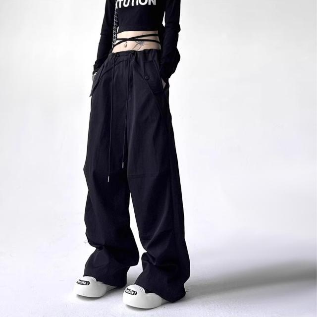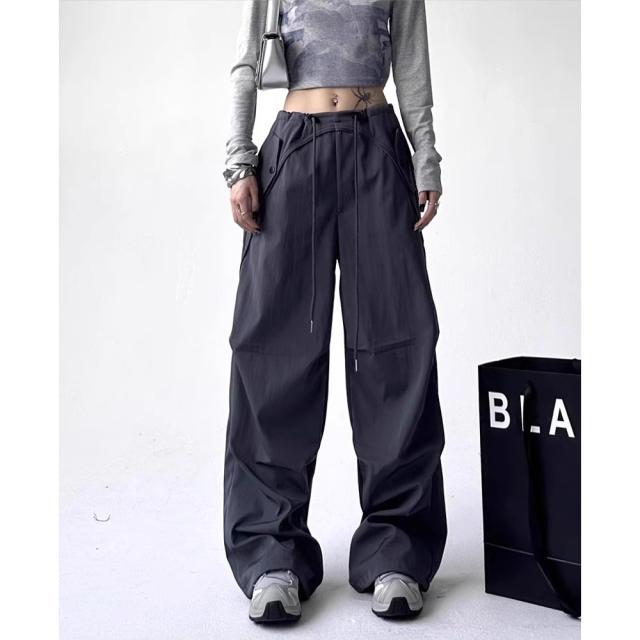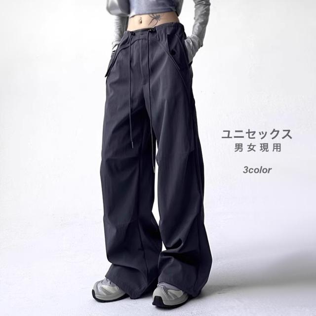 ユニセックス カーゴパンツ ゆったり 韓国風 ウエスト調節可能 カジュアル [3色]#Pant676 M便