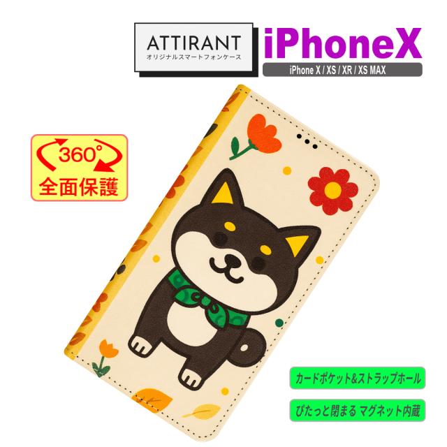 iPhone X ケース 手帳型 カバー X XS XR XSMAX 和風 黒豆柴 犬 かわいい オシャレ アイフォンケース