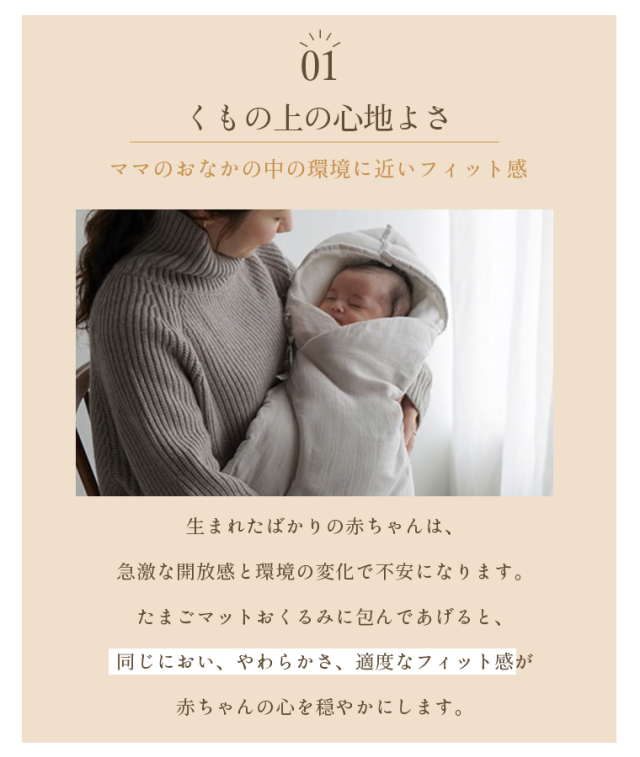 継続的に使用することで、同じ匂い、同じ柔らかさの中で 赤ちゃんが安心してゆっくり眠ることができるのでママやパパにも嬉しいアイテム。