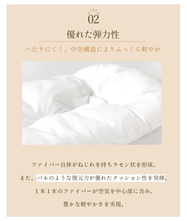 中わたには、ヘタりにくく優れた弾力性のウォシュロンわたを使用。