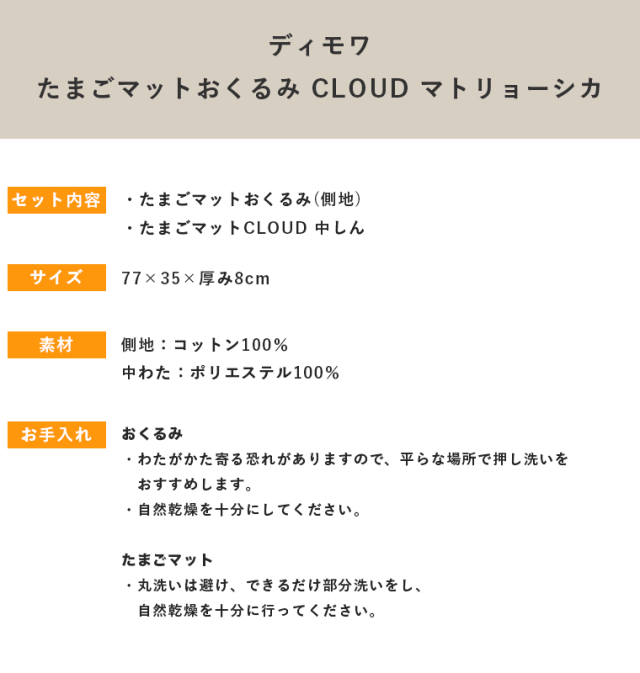 フィセル ディモワ 10mois たまごマットおくるみCLOUD マトリョーシカ 20251000 スワドル 抱っこ必須アイテム 背中スイッチ対策 おくるみ 秋冬生まれ ベビー 出産祝い 正規販売店 ベビー用品 日本製 ギフト プレゼント
