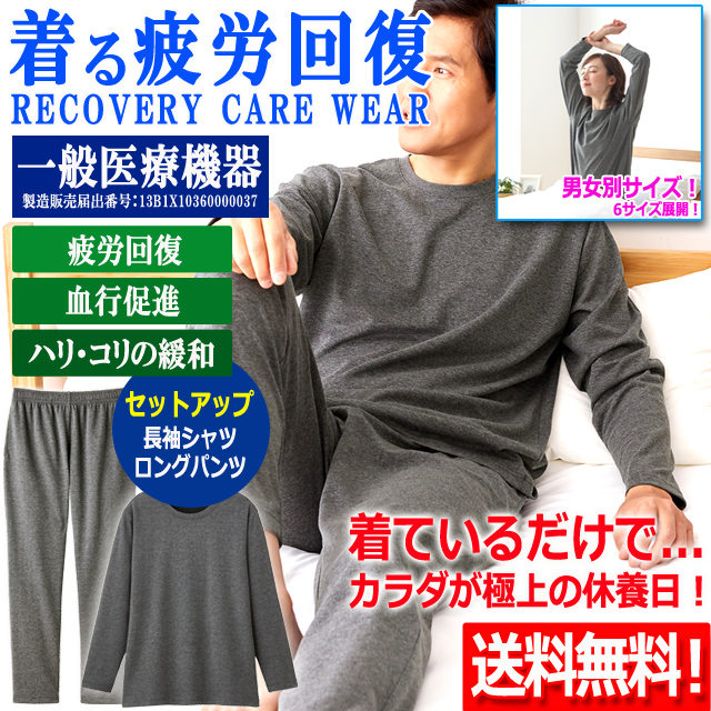 一般医療機器 着る疲労回復リカバリーケアウエア セットアップ長袖シャツ& ロングパンツ 遠赤外線 血行促進 インナー ルームウエア パジャマ 睡眠