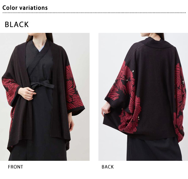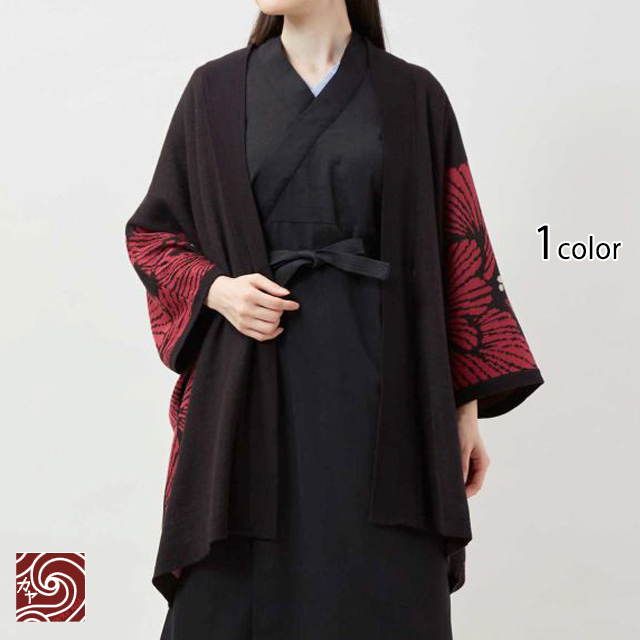 伝統と素材を活かしたオリジナル和柄小物が人気の「カヤ」から「銀杏狩り羽織(75J-1303)」のご紹介です。 重なり合う繊細な銀杏の柄が目を惹くオーバーサイズのニット羽織りです。 たっぷりな丈で大きめな作りは、重ね着しても響かない優れもの。 シンプルなカラーなので普段使いはもちろん、着物の上に合わせるのもおすすめ。 羽織の紐は結んでもそのままでも素敵に着こなせます。 | ||||||