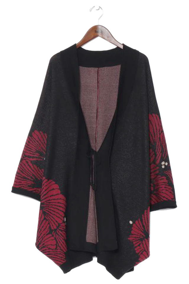重なり合う繊細な銀杏の柄が目を惹くオーバーサイズのニット羽織りです。
