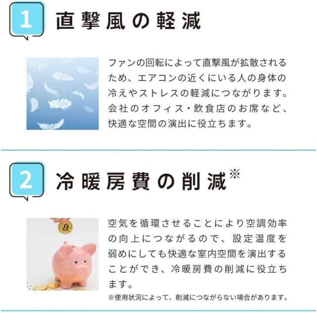 2.冷暖房の温度ムラを撹拌、空調効率が向上します。
