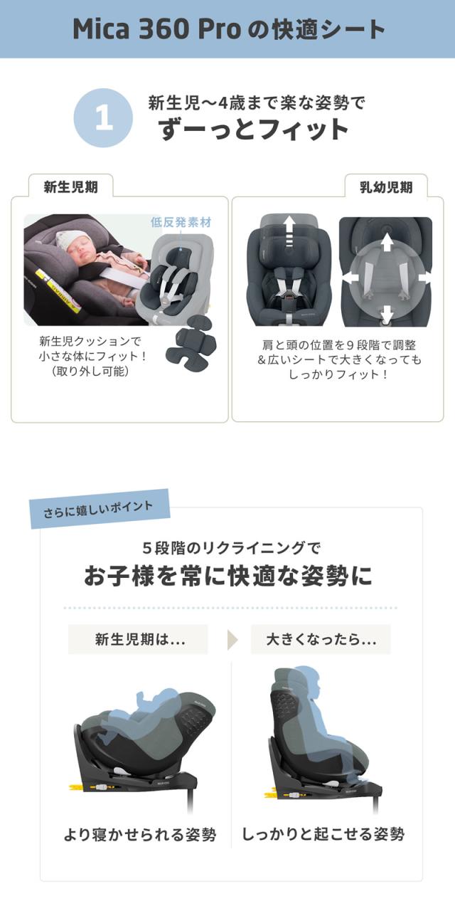 【正規販売店/4年保証】マキシコシ マイカ360 プロ (送料無料) ベビーシート チャイルドシート R129適合 新生児 回転式チャイルドシート MaxiCosi Mica 360 Pro エアバギー