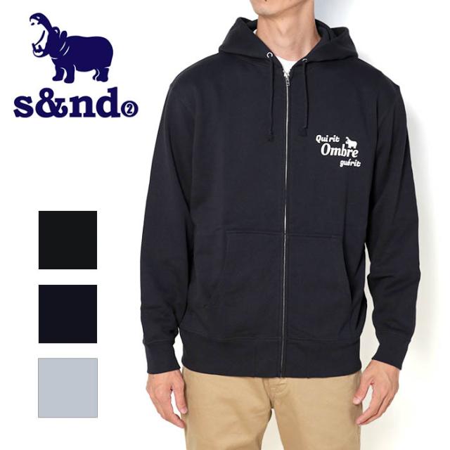 s&nd セカンド Sd-R1126 Ombreロゴジップアップパーカー ワンポイント スウェット 文字 フード フーディ カジュアル シンプル 日本製 綿100 パーカー 前開き スウェット 長袖