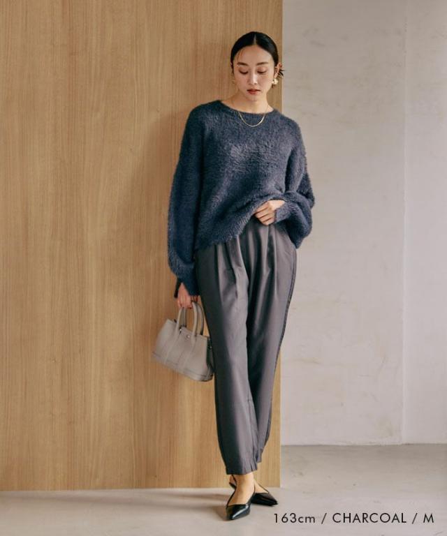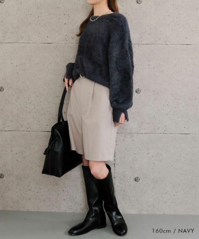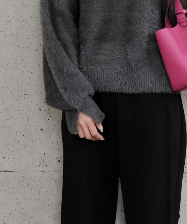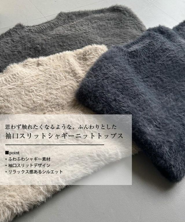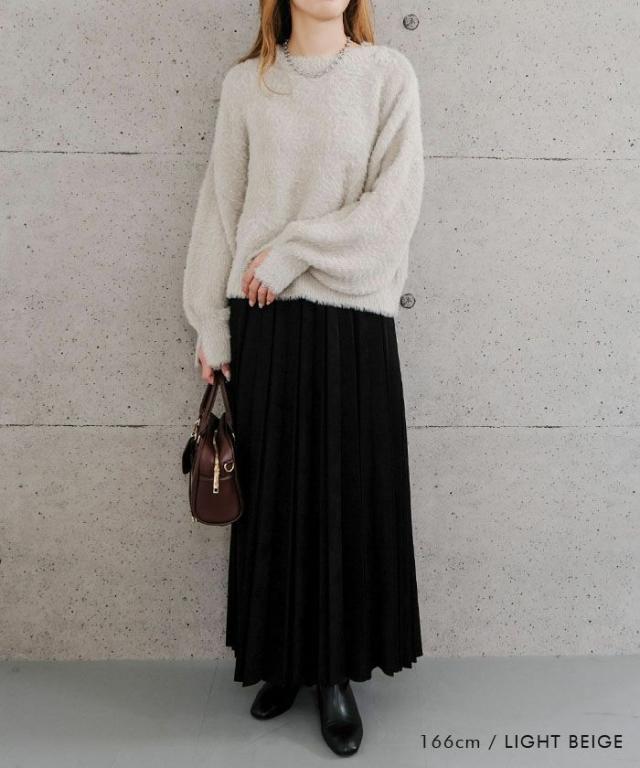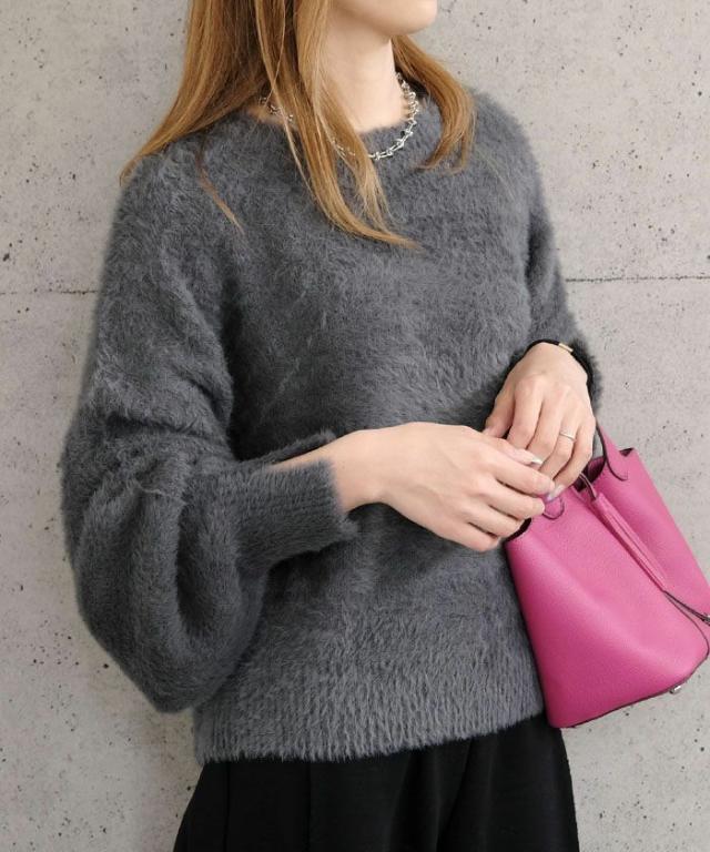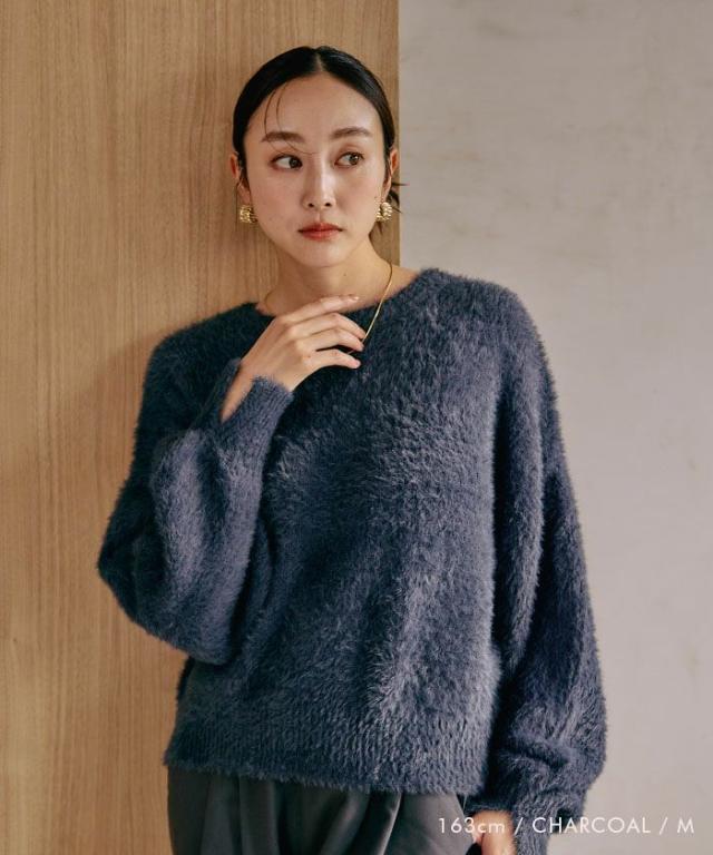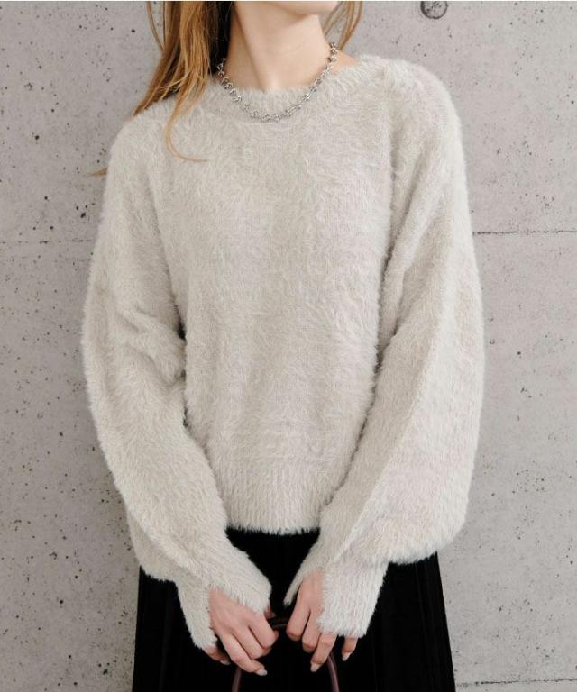 思わず触れたくなるような、ふんわりとしたシャギーニットのトップス。