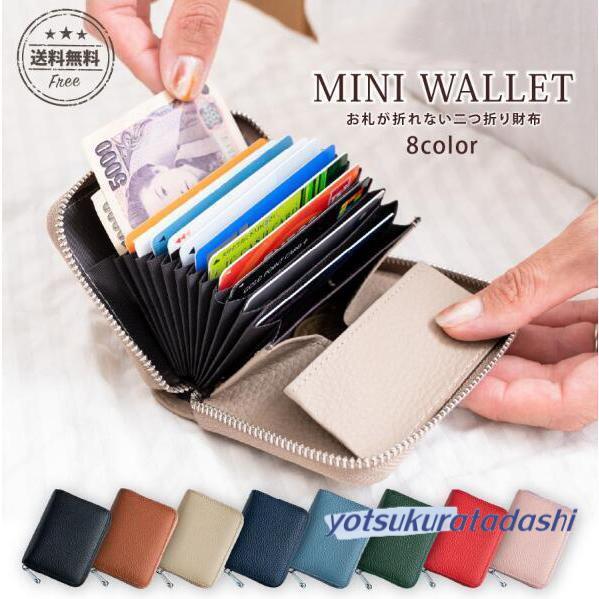 ミニ財布 二つ折り お札が折れない 本革 レザー 小銭入れ コインケース カードケース 大容量 コンパクト レディース メンズ ミニ財布 カード入れ
