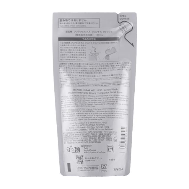 [2個セット]雪肌精 クリアウェルネス ジェントル ウォッシュ つめかえ用 140mL 無香料 洗顔料 泡洗顔フォーム 詰め替え用 レフィル[ギフトラッピング対応]