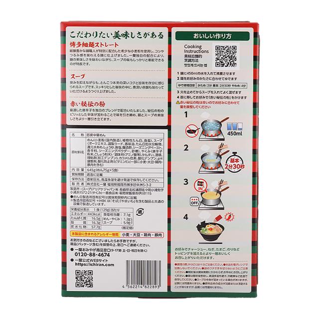 一蘭ラーメン 博多細麺ストレート 129g×5食 スープ 赤い秘伝の粉 唐辛子[ギフトラッピング対応]