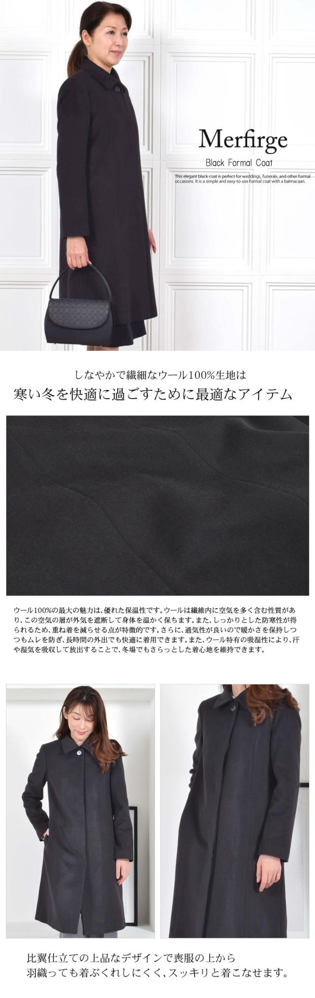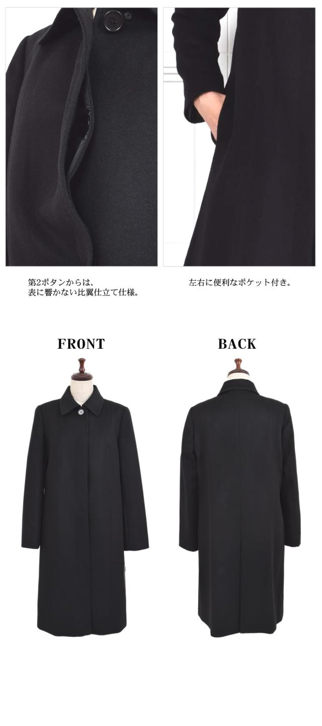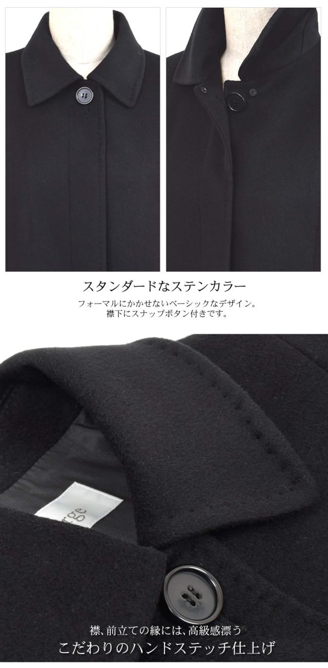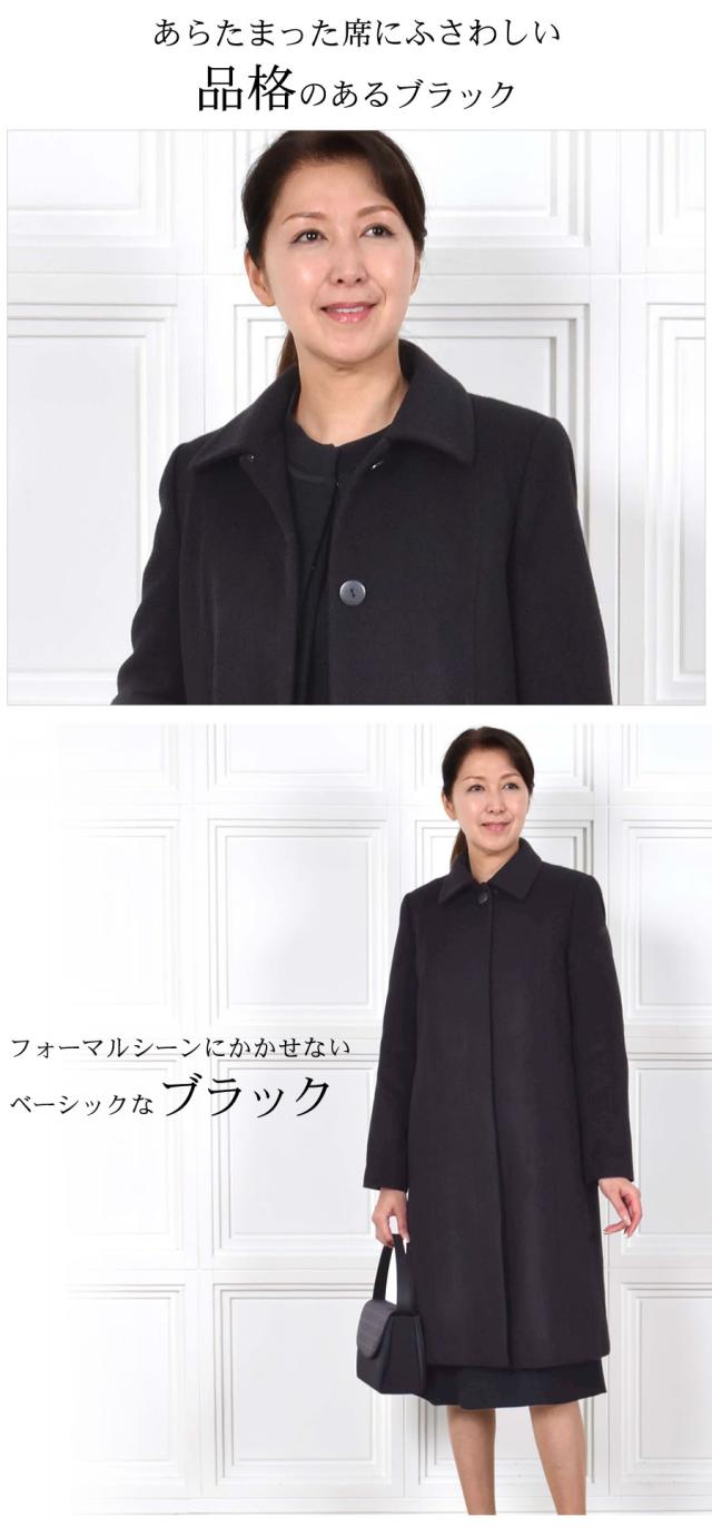 ウール 100% コート レディース ステンカラー アウター 冬 秋 ブラックフォーマル 葬式 黒 女性 お通夜 礼服 フォーマル 法事 法要 冠婚葬祭 弔事 セレモニー (wo2580)