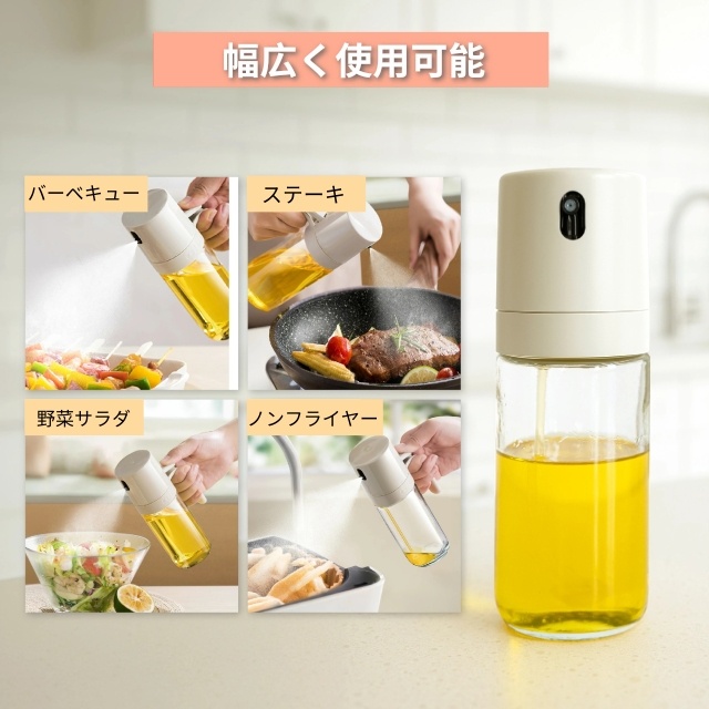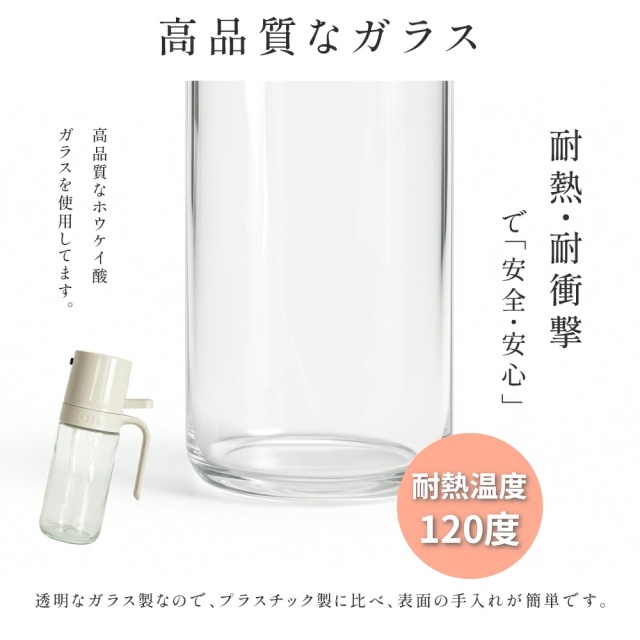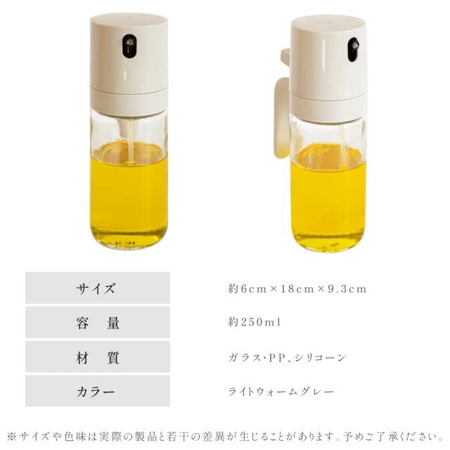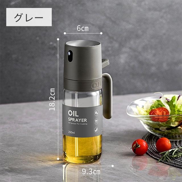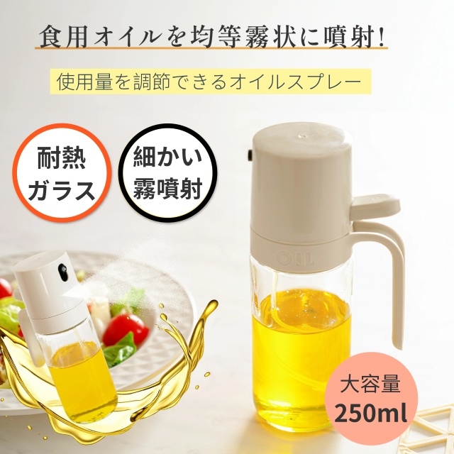 耐熱ガラス オイルスプレー 250ml 霧吹き 極細ミスト 食用油用 ボトル 漏れ防止 キッチン&キャンプ用 透明ガラス オイルポット 詰め替え用 調味料入れ 油いれ容器 透明