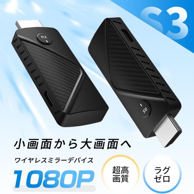 S3ワイヤレスミラリング(HDMI伝送ツール)は、次世代の無線映像伝送ソリューションです。1080P/60Hzの高精細画質を安定して伝送できる双方向通信システムで、会議室、教室、ホームシアターなど様々なシーンで活躍します。有線接続の煩わしさから解放され、最大30mの遠距離伝送を実現しました。