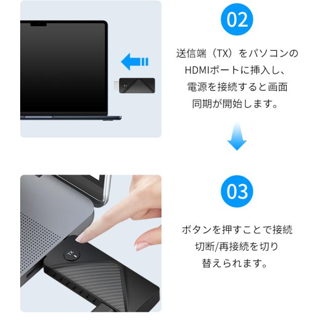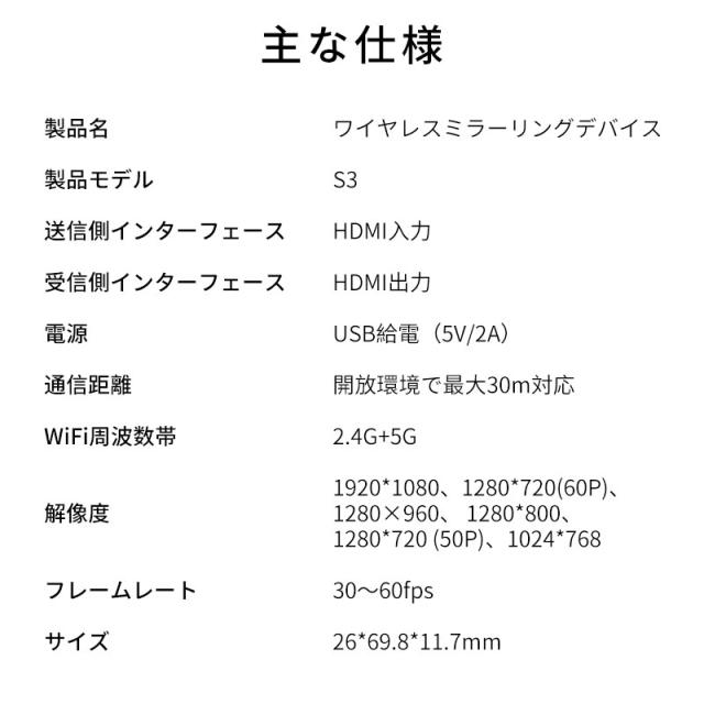 ミラリング 【ワイヤレスHDMI伝送システム】 HDMIミラーキャスト1080P/60Hz 高画質 無遅延30m長距離対応 プラグアンドプレイ 大画面に投影 2.4GHz&5GHz周波数帯対応 ノートPC/テレビ/プロジェクター/Switch PS5対応 TX/RXセット 90日安心保証付【PL保険加入済み製品・安心】