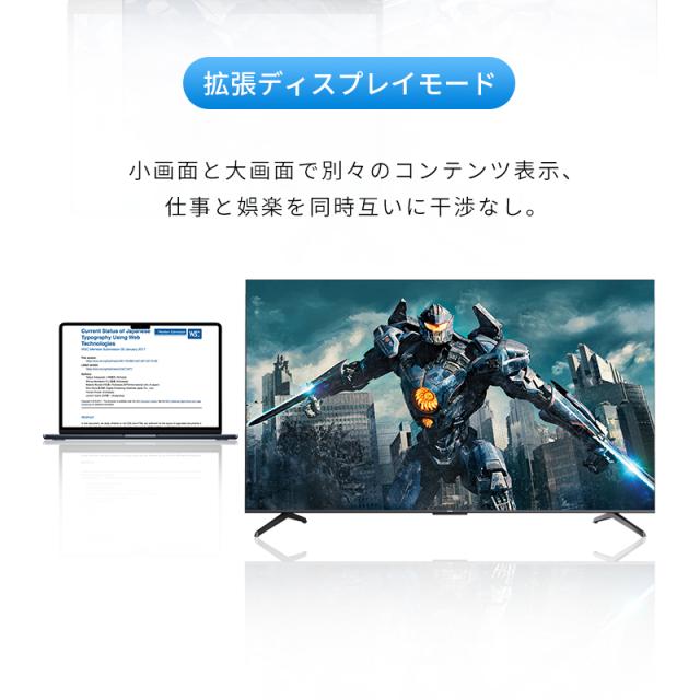 - 複雑な操作もいらず、問題なくパソコンとTVミラリングできました。 日本語の説明書付きなのもうれしいですね。