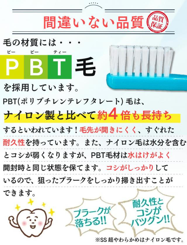 ナイロン毛より歯質摩耗性がありますが、耐久性に優れています。