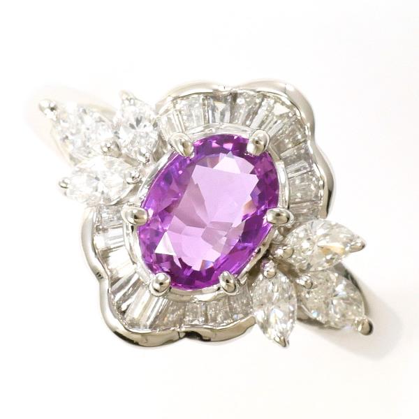 PT850 プラチナ リング 指輪 12号 パープルサファイア 1.21 ダイヤ 0.67 カード鑑別書 総重量約5.9g 中古ジュエリー